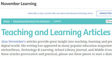 Alan November is a popular author on topics related to the use of technology in classrooms and schools. The Library especially recommends the article "The Advanced Google Searches Every Student Should Know" -- a fine example of how helpful you will find Alan November's articles to be.